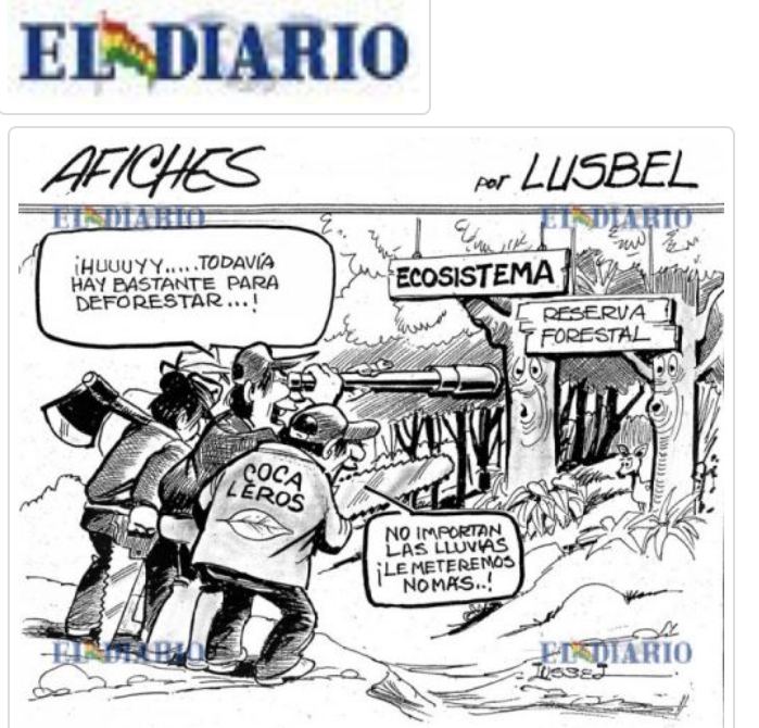 This cartoon from El Diario portrays this clearly and we must stop evo from destroying not only our environment but countless human lives who fall under the cocaine influence!