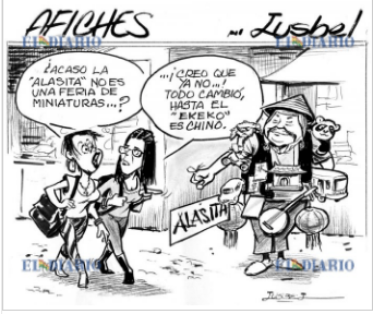 This cartoon from El Diario, 01/24/2019 refers to the increased volume of Chinese products which come to Bolivia legally and illegally …