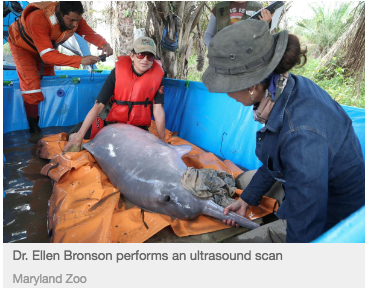 “Having worked on wildlife health and conservation projects in Bolivia since 1999, I was happy to collaborate with Bolivian colleagues and Dr. [Ellen] Bronson to help address this increasing conservation challenge that threatens the long-term survival of the river dolphin of Bolivia,” said Dr. Sharon Deem, director of the Saint Louis Zoo Institute for Conservation Medicine. “This rescue project also presented the opportunity to perform complete medical exams on the animals, which we believe is a first for the species — a species designated as separate from the Amazonian river dolphin in 2012.”