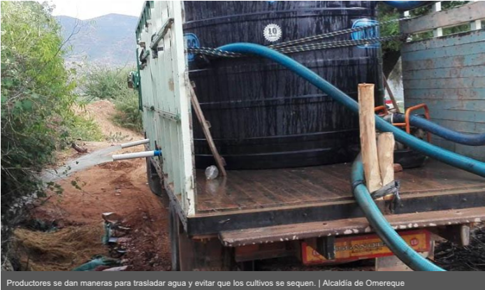 Due to the lack of cisterns, producers improvised with trucks to load tanks to bring water to their crops, seeking to avoid further losses.