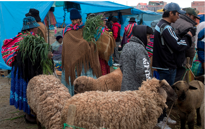 Two women barter over the price of sheep at the ‘Feria de Ramos’ or Palm Fair, in El Alto. (AP Photo/Juan Karita)