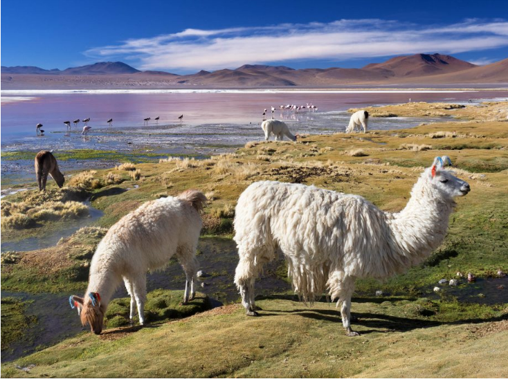Backed by snow peaks and rust red hills, this landscape owes its palette of white, blue-green and pink colourwashes to the high density of minerals that make it, surely, one of the most ravishing — as well as potentially lucrative — deserts on Earth. We reach 16,100ft, where one-legged flamingos stand immobilised in ice. The air is thin and crystal clear, the wind chill. Heads throbbing, we don our alpaca hats and head for a lone hut that marks the Chilean border.
