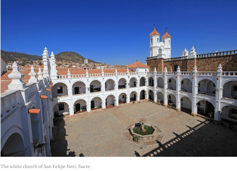 We start at a cultural high point, in the historic capital of Sucre. One of the two best preserved colonial cities in South America, this jewel of neo-Classical architecture in the Andes spills over a plateau of the Central Highlands in a grid of red-tiled and whitewashed buildings punctuated by church towers. Among them is the Parador Santa María La Real, formed from three old houses and furnished by its connoisseur owner with carved and gilded antiques crafted by colonial artisans. With its vaulted ground floor and balconied courtyards, the parador has a monastic feel — we even found ourselves drinking wine one evening with a sprightly archbishop, Monsignor Jesús Juárez Párraga — yet its comforts will satisfy all but the most pampered guests.
