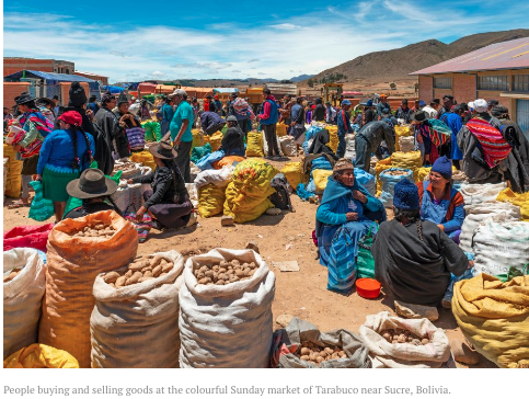 Stalls line the narrow alleyways, many laid out on the ground, their owners, in pretty aprons and sandals made of tyres, squatting beside them with their babies. Everybody is snacking and chattering in the ancient Quechuan language of the Andes. There’s a forge, a fortune teller, a thronging fruit-and-veg market and drinking dens reeking of chicha. Anybody interested in South American textiles should spend time in Sucre’s Museum of Indigenous Art before visiting Tarabuco’s vibrant Sunday market.