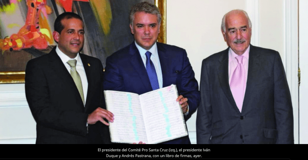 Thanks to the mediation of former President Andrés Pastrana, the Pro Santa Cruz Committee was able to deliver the request for consultation to the Colombian President.