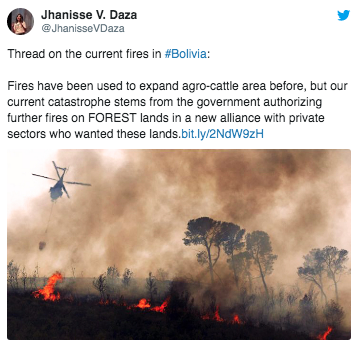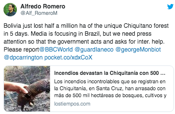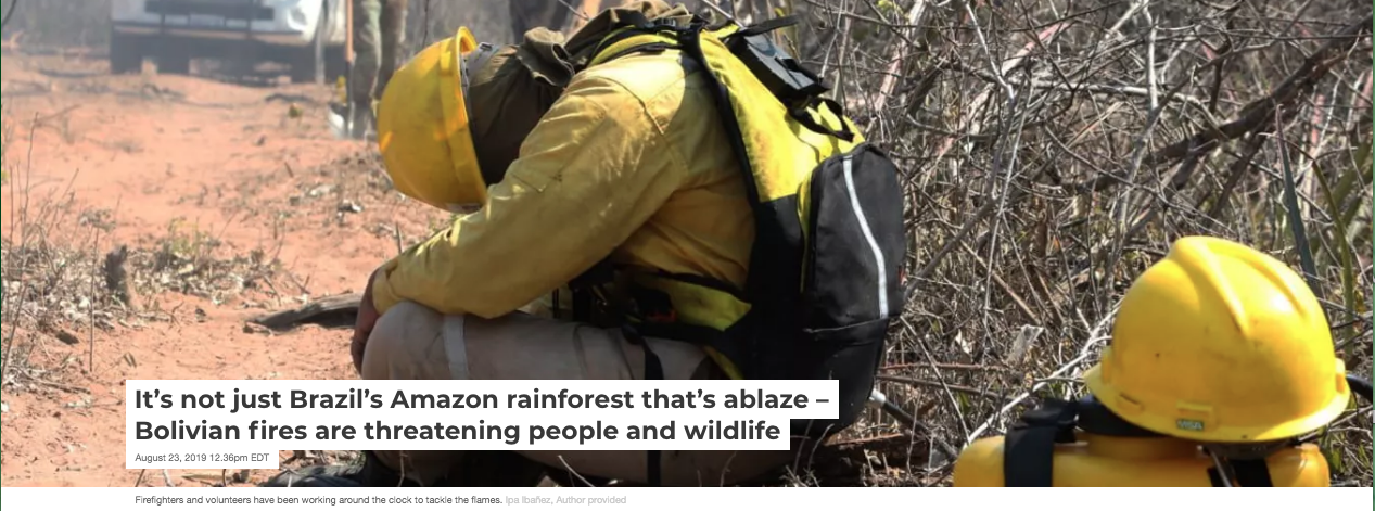 Bolsonaro and Brazil might grab the headlines, but Bolivia too is now host to a desperately serious humanitarian and environmental situation.