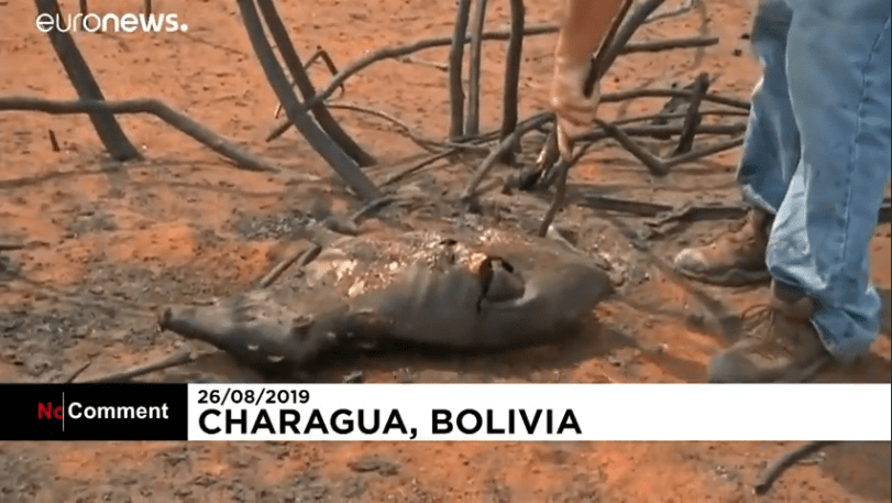 Ash has replaced leaves and dead animals scatter the charred earth in this area of the Andean country near its border with Paraguay.