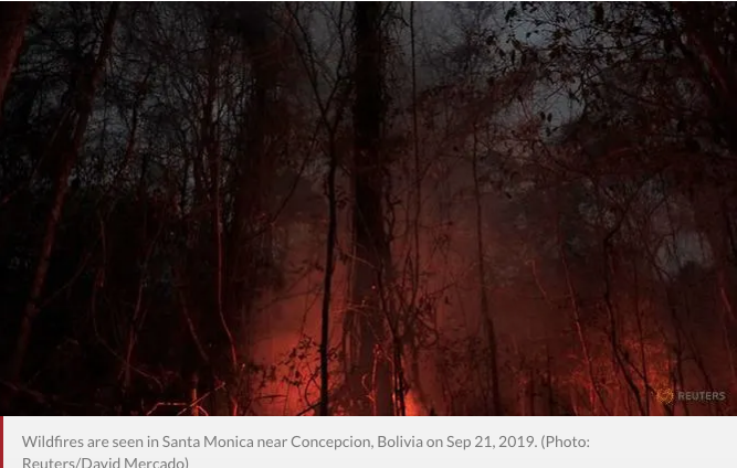 In the dusty cattle ranching town of Concepcion, despite nearly two months of non-stop firefighting, blazes that had been put out in surrounding dry forests have reignited while others continue to spread towards the towards the Noel Kempff Mercado National Park, a gateway to pristine Amazonian rainforest.