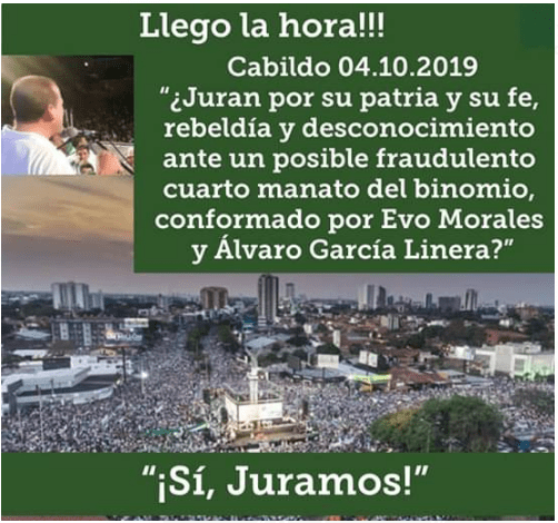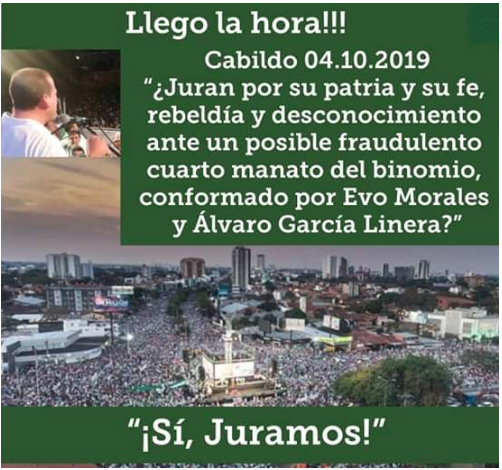 Bolivian Thoughts opinion: There were huge gatherings of Bolivians in Santa Cruz, La Paz, Cochabamba, Tarija and Potosi, where people expressed its firm intention to fight for our democracy, even more so if evo would engage in fraud … it is time to stop him once and for all!