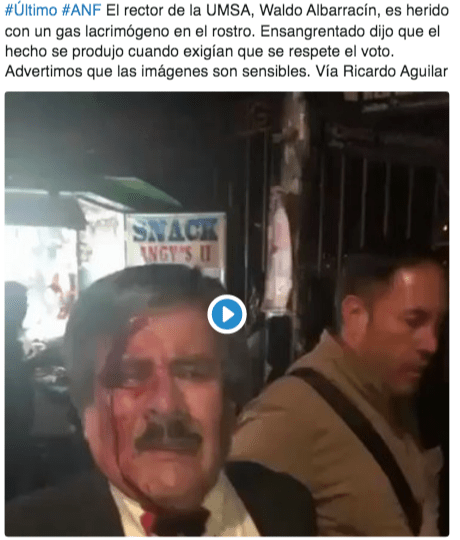 Waldo Albacarrín, a prominent human rights activist and university president, was among those wounded during protests on Monday. With blood streaming from his forehead after he was struck by a tear-gas canister, he said critics of Mr. Morales would remain undaunted.