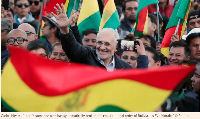 “Mesa won’t last a year in office,” said a senior official in Mr Morales’s administration, adding that the risk of social conflict would be high.