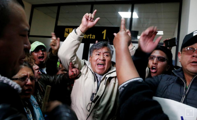 LA PAZ (Reuters) – A protest leader traveling to Bolivia’s capital to push for President Evo Morales’ resignation reversed course on Tuesday after government supporters staked out an airport chanting for his removal, authorities said.