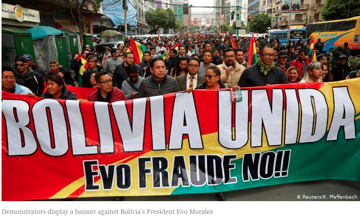In the meantime, protest leader Luis Fernando Camacho arrived in the Bolivian capital, La Paz, demanding Morales’ resignation over the rigging accusations.