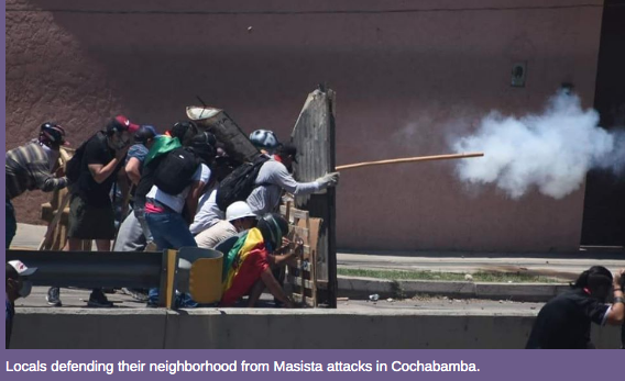 Without a single gun among them, I´ve watched Bolivians arm themselves with homemade weapons and shields made of sheet metal to defend their homes from vicious armed attacks by Masista gang members who support the president.