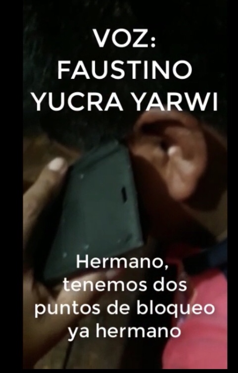“FAUSTINO: Brother we have [a] two point of blockade, ok brother, one in Tiquipaya. We have 4 thousand to 500 people brother and [on] another, for you knowledge boss in… Angostura, in the middle mountain brother.