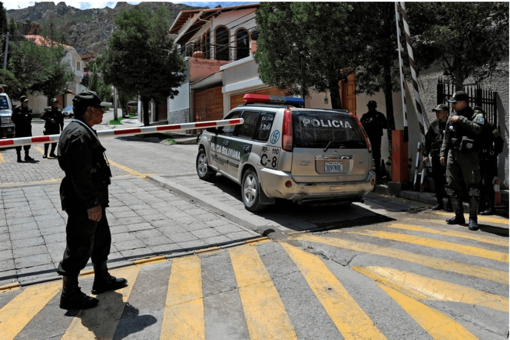 The tensions exploded into the open last week after the Spanish government unexpectedly became involved. On Friday, two Spanish diplomatic cars, driven by masked security officers, tried to enter the Mexican ambassador’s residence in La Paz, fueling suspicions that Spain was trying to quietly intervene in the standoff.
