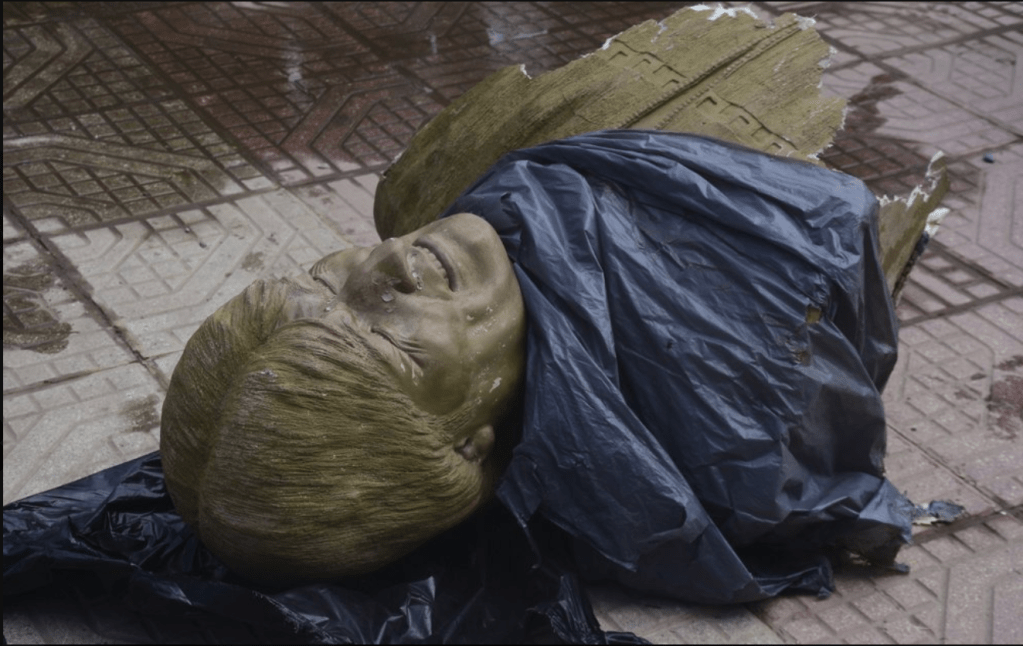 It was a scene reminiscent of some nations after the fall of the Soviet Union, but it was taking place in the Bolivian city of Cochabamba and the object of the battering was former President Evo Morales.