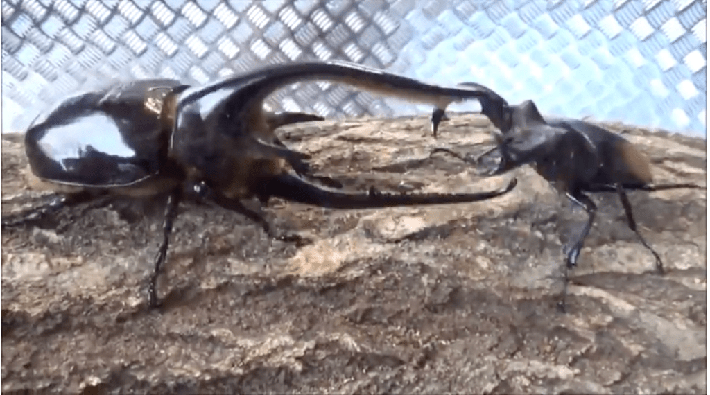 In the wild, rhinoceros beetles use their horns as weapons to variously lift, flip, or toss other males into the air in fights for dominance during mating season.