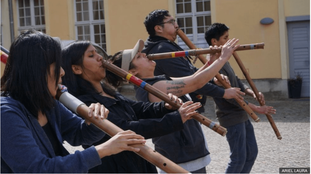 “The breathing techniques required to play these instruments for a few hours put you in a kind of trance,” says Miguel Cordoba, who plays the siku flute.