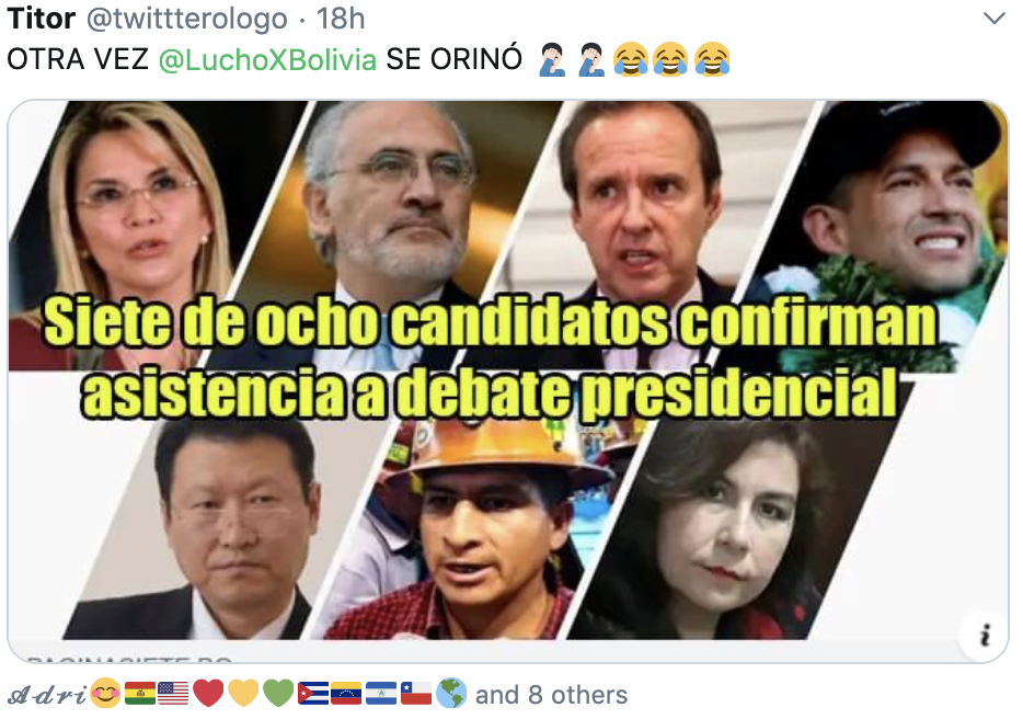For years a presidential debate was not held due to Evo Morales’ reluctance to participate, and as he was the main candidate for a long time, then the initiatives to organize them were truncated. The Association of Journalists of La Paz coordinated one in 2014 that had some success, although neither Morales attended the presidential candidates, nor Álvaro García Linera the vice presidential candidates.