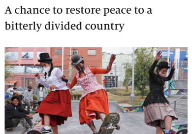 But he will probably inflame Bolivians less than Mr Morales and Ms Áñez did. Some indigenous people regard Mr Mesa, who was driven from office in 2005 by demonstrators demanding nationalisation of gas, as a blander version of the interim president. A graffito in Villa Armonía declares “Mesa = Añez”. Mr Mesa responds that he will fight racism and poverty. “A president should be judged by his actions, not by the colour of his skin,” he says.