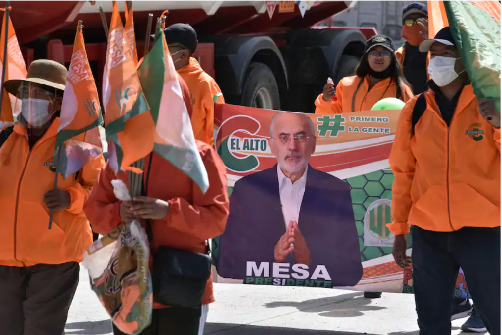 “This is a vote that has to do with democratic consciousness,” Mesa said this week on Bolivian television. “I have one adversary. The country has one adversary that must be defeated democratically at that the ballot box. The Movement Toward Socialism.”