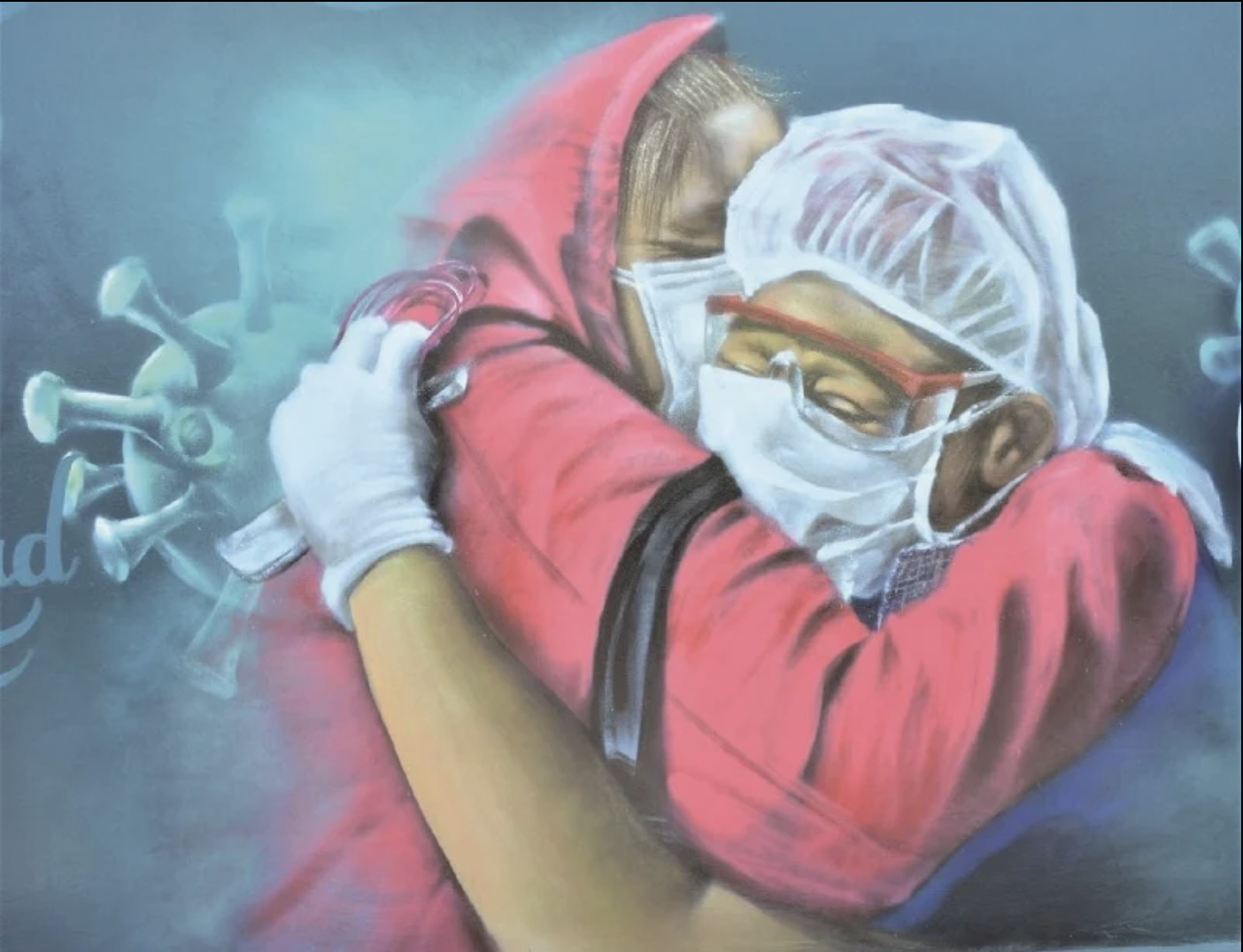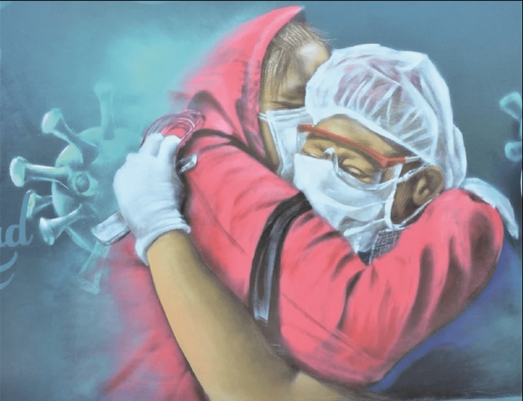 In a second scene, they portrayed recovered patients hugging as a sign of hope. In the third part, they painted three faces: a nurse wearing a mask, a police officer and an Armed Forces soldier, all of whom worked tirelessly during the peak months of the pandemic.