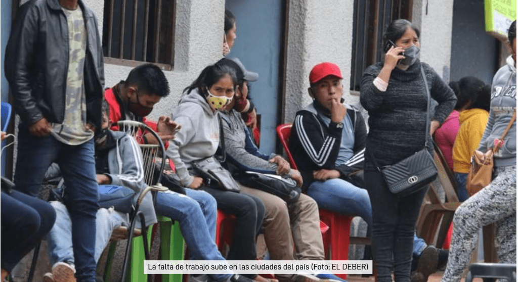 De acuerdo con el Instituto Nacional de Estadísticas, a finales de octubre de esta gestión, la tasa de desempleo urbano subió de un 4,5% a un 8,7%, la institución considera que el dato se potencio por una mala combinación de políticas económicas y la presencia del Covid-19.