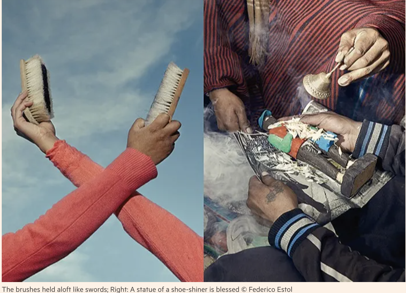 For three years, I have been collaborating with 60 shoe-shiners associated with the NGO Hormigón Armado, which works to protect the younger ones from exploitation, on the creation of a photo essay inspired by graphic novels. This shows the shoe-shiners as the superheroes they are: I can attest that there are shoes in Bolivia that dazzle thanks to their superpowers. (The shoe-shiners’ nickname is hormiga, or ant, so the NGO’s name means Armed Ant, suggesting their strength.)