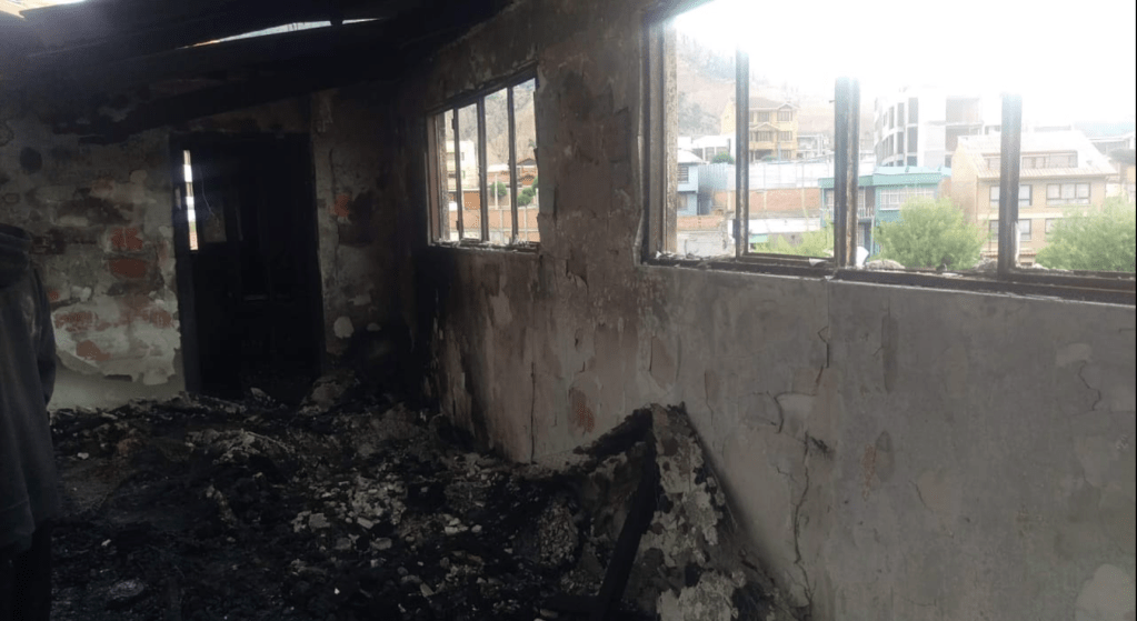 La casa del defensor de derechos humanos Waldo Albarracín fue incendiada el 10 de noviembre de 2019, presuntamente por partidarios del MAS.