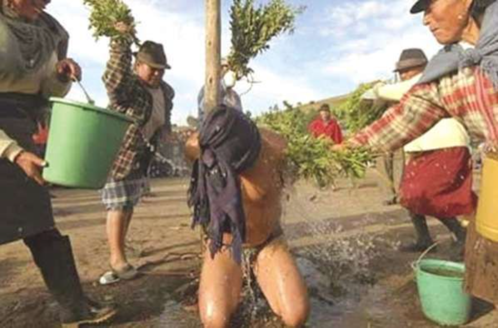 Esa clase de ajusticiamiento, más conocida como linchamiento, se hizo presente en forma masiva en el país desde hace quince o veinte años, no fue combatida debidamente y, para completar, su práctica fue legalizada, en cierta forma, por la Constitución vigente a partir de la apreciación de que se debe respetar los usos y costumbres de los pueblos originarios e inclusive urbanos, para los cuales se extendió de hecho la práctica de la justicia por mano propia. Es una función judicial primitiva, que resultó corriente aun en ciudades de gran cantidad de población y donde existen autoridades policiales y judiciales, encargadas de evitar que se propague ese mal y en caso de que ocurran, sancionar a los autores de esos crímenes, es decir, cualesquiera fuesen los delitos de que son acusados los individuos sometidos a procedimientos de ese tipo de violencia.