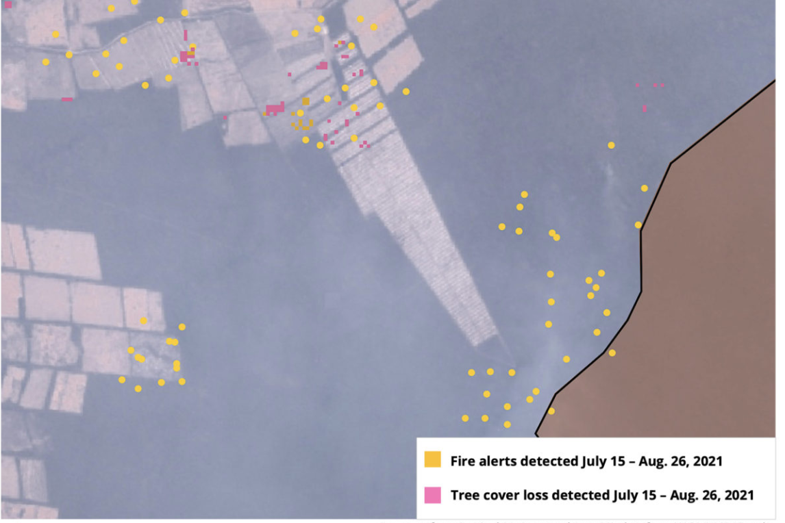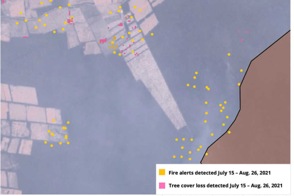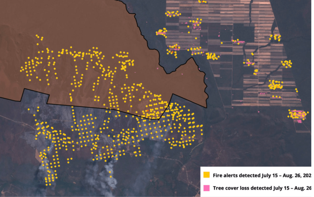 - Satellite data show fires have intensified over the past two weeks and are invading protected areas.