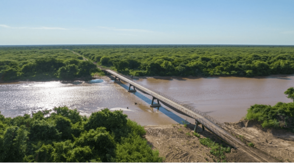 Así que lo que hizo ese grupo de menonitas fue comprar 14.400 hectáreas del bosque seco chaqueño de Cuarirenda, al otro lado del río, y construyó el puente cuyo primer uso fue introducir maquinaria pesada y deforestar el bosque. Lo hicieron, dice el periodista, en silencio, y a espaldas del Estado.