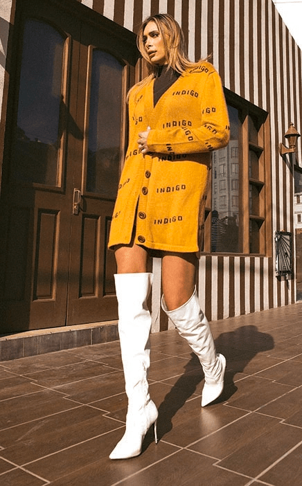 Beige monogram knit dress.