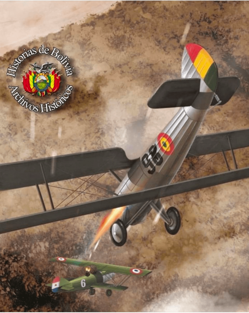 The two adversary planes ran into each other in the vicinity of the Saavedra fort, more than 1,500 meters above sea level. The incidents of the unique air combat was an exceptional spectacle; both winged contenders made an extraordinary display of skill and intrepidity, which shocked and deeply moved the thousands of soldiers, both Bolivian and Paraguayan, who, making a spontaneous parenthesis in their mission to kill each other, from their respective trenches gazed absorbed at every detail of that fierce individual fight.