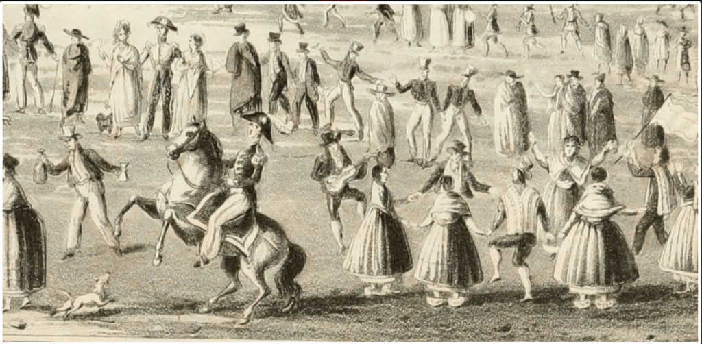 Detalle del grabado del carnaval potosino en el libro de Temple.