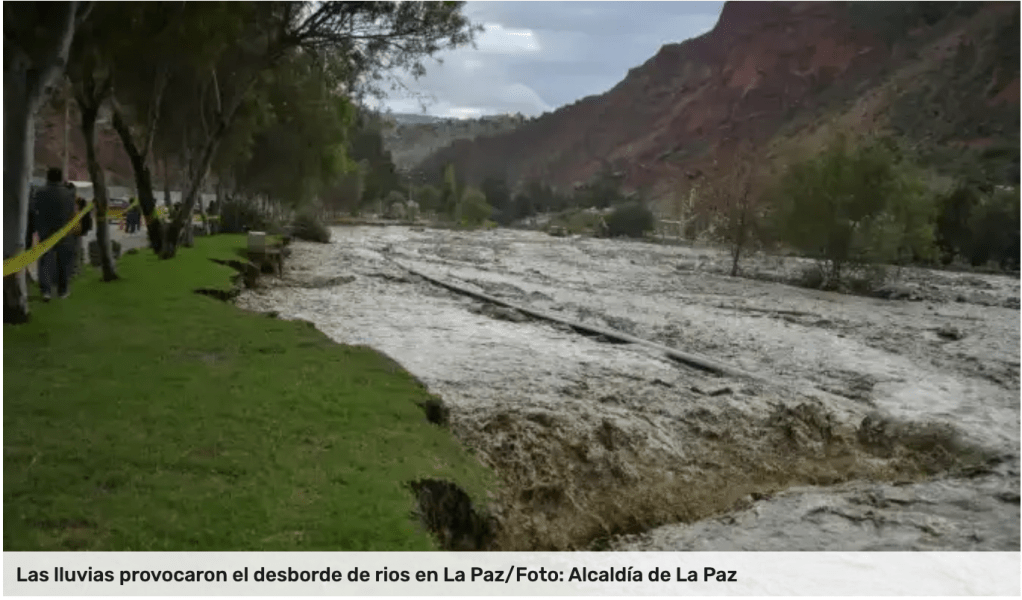 - Two rivers in the southern zone of La Paz that run through the Achumani sector overflowed and caused destruction in their path. Following requests from residents and authorities, the Municipality declared a state of emergency for three basins and Zongo due to the rains.