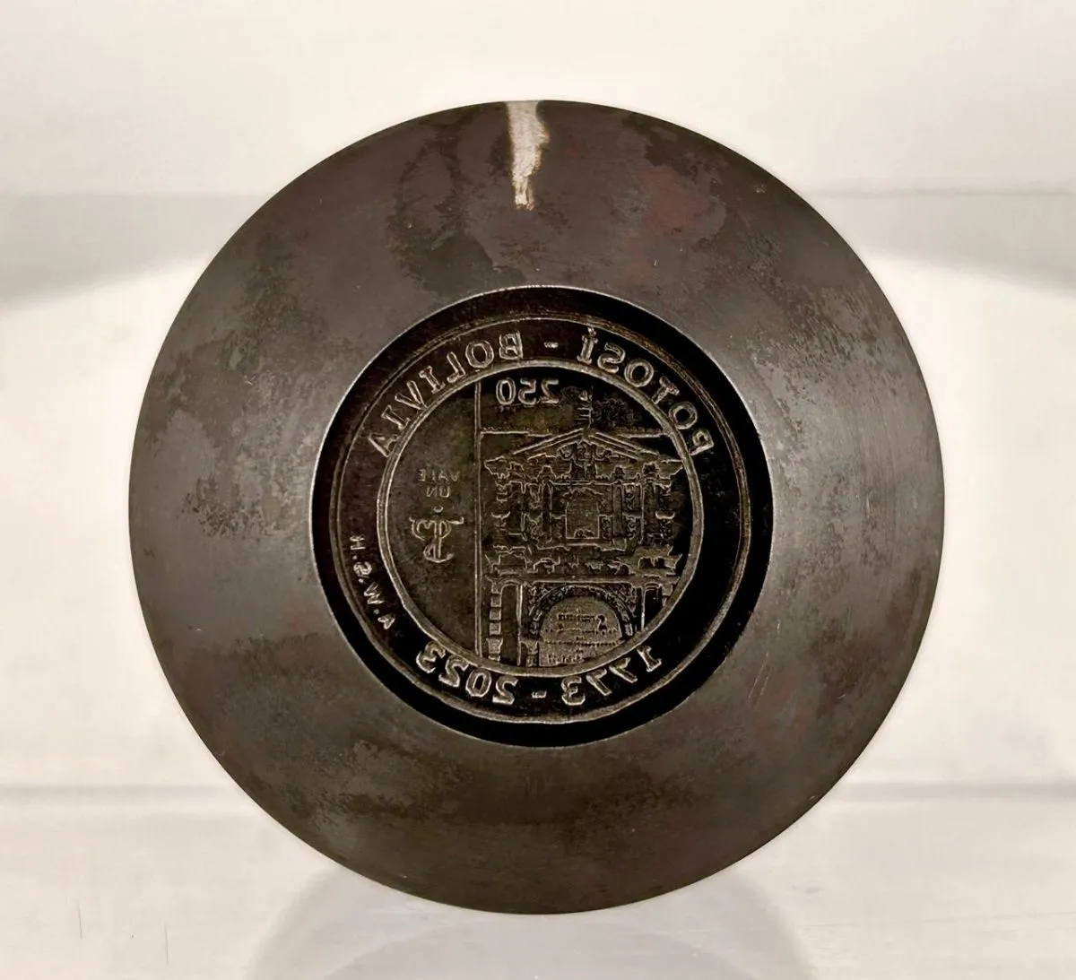 The process began with the Commemorative Die Design contest organized last year by the repository, aimed at young people from Potosí. Limbert Martin Huanca Aguirre (a student at Pichincha College) and Alex William Sánchez Huallpa (a student at the Faculty of Arts of the Autonomous University Tomás Frías) were the winners. According to the jury, both designs captured the historical importance of the National Mint House for the city of Potosí and its cultural heritage.