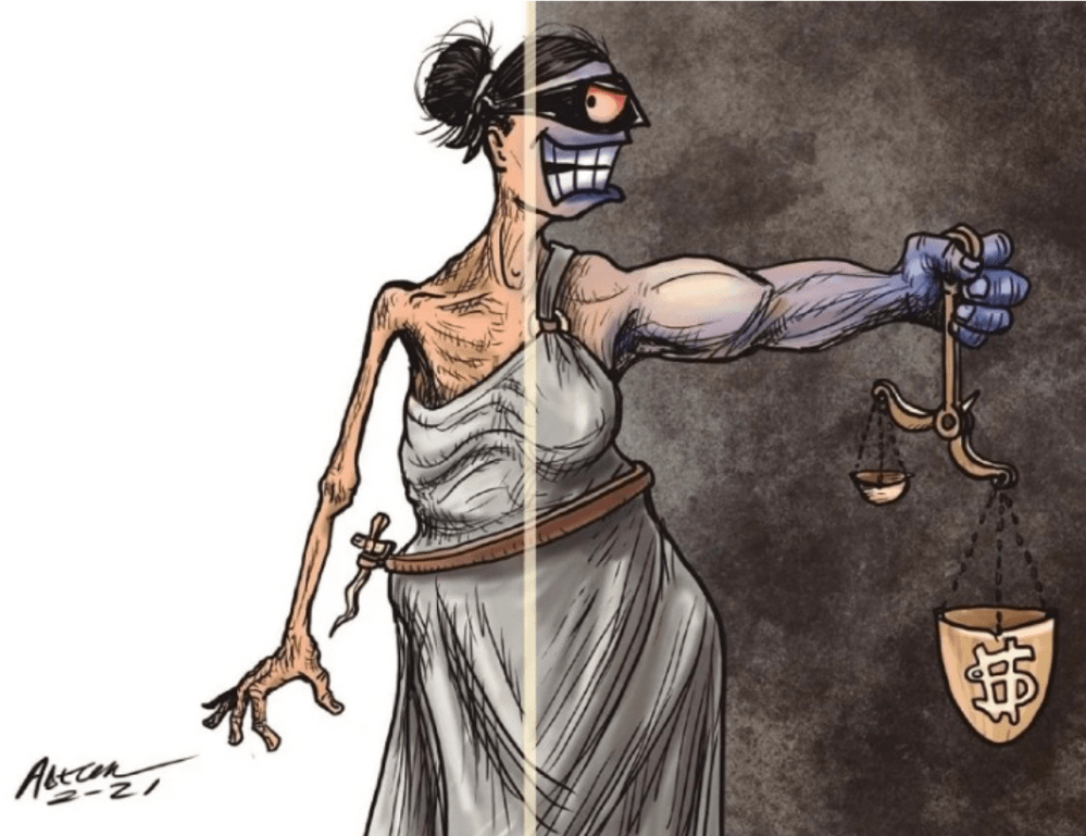 Judges like the presiding judge turn justice into a customizable product, where sentences, regardless of their severity, have a price, as revealed in the case of the femicide Richard Choque who paid in 2015 to the judge of penal execution Rafael Alcón Aliaga $3,500 and a bottle of whiskey so that, through a legal ruse, he would be set free.