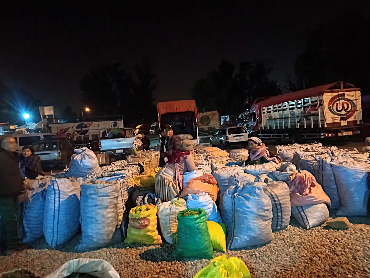 Between one and six in the morning, Calle 5 in Villa Dolores in El Alto, the streets adjacent to the Rodríguez Market in La Paz, or El Tejar near the General Cemetery, fill with trucks loaded with vegetables, tubers, and other produce. Hundreds of farmers arrive in the cities with products freshly harvested from their fields.