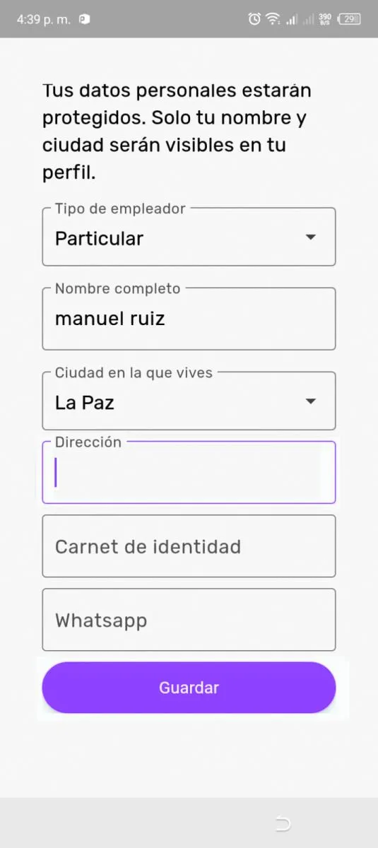 Una vez descargada, la aplicación pide al usuario datos esenciales como su nombre, carnet de identidad, lugar donde vive y contacto telefónico.