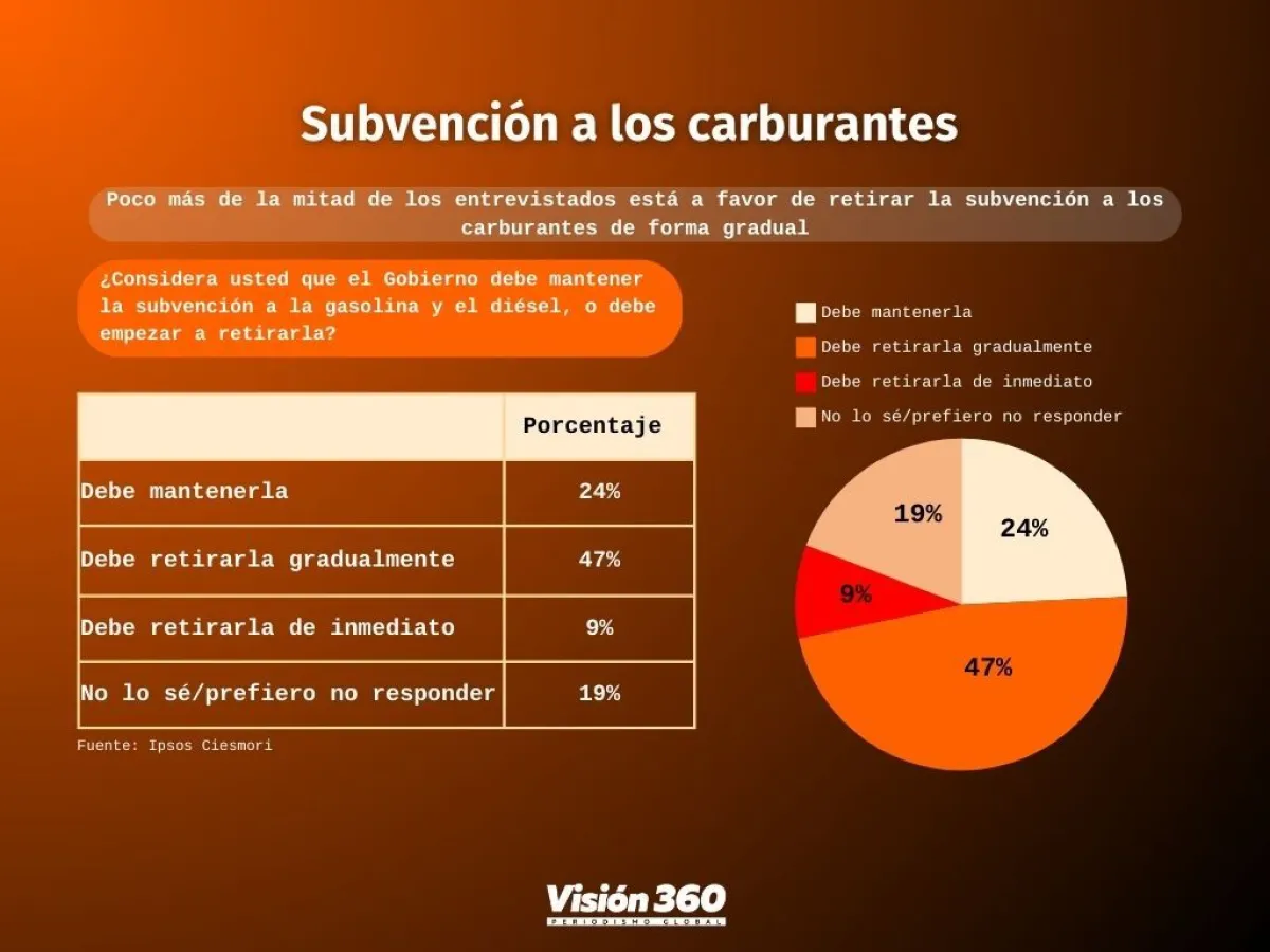Según la encuesta de Ipsos Ciesmori, más de la mitad de los encuestados está a favor de retirar la subvención a los carburantes de manera gradual.