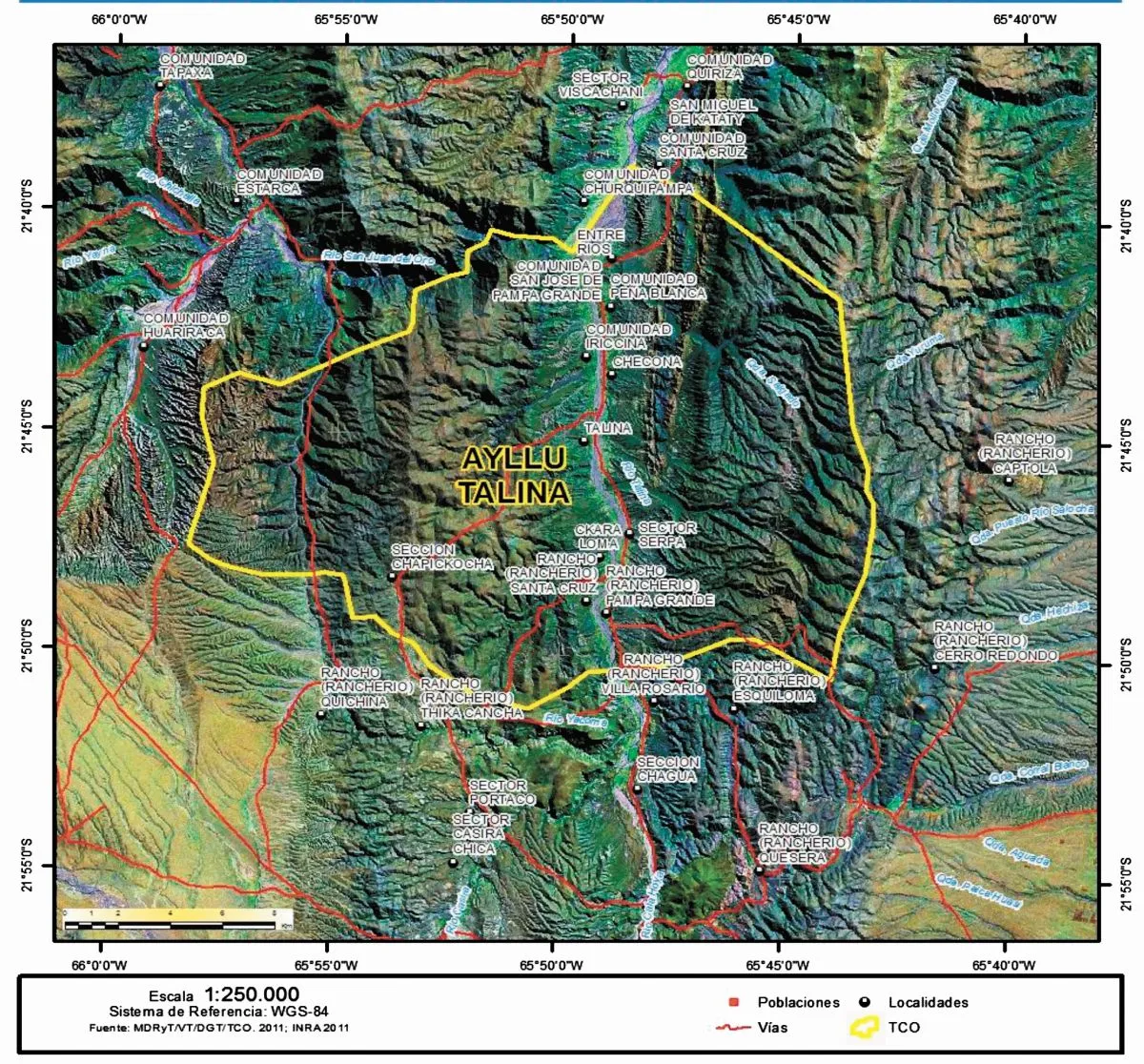 According to data from the Vice Ministry of Lands, the organization of the Ayllus of Talina has indigenous characteristics; their communities are affiliated with the Council of the Chicha and Wisijsa Nations and, at the national level, belong to the National Council of Ayllus and Markas of Qullasuyu.