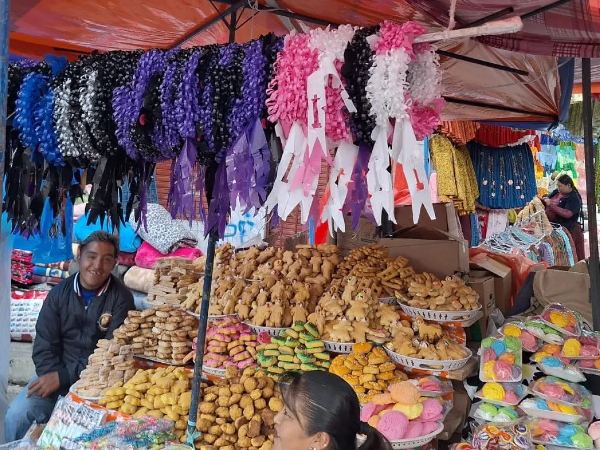 Around Max Paredes Square, sweets and other pastries like sponge cakes and cookies are also available. Additionally, there are garlands in different models and colors, with crowns and crosses being the favorites.