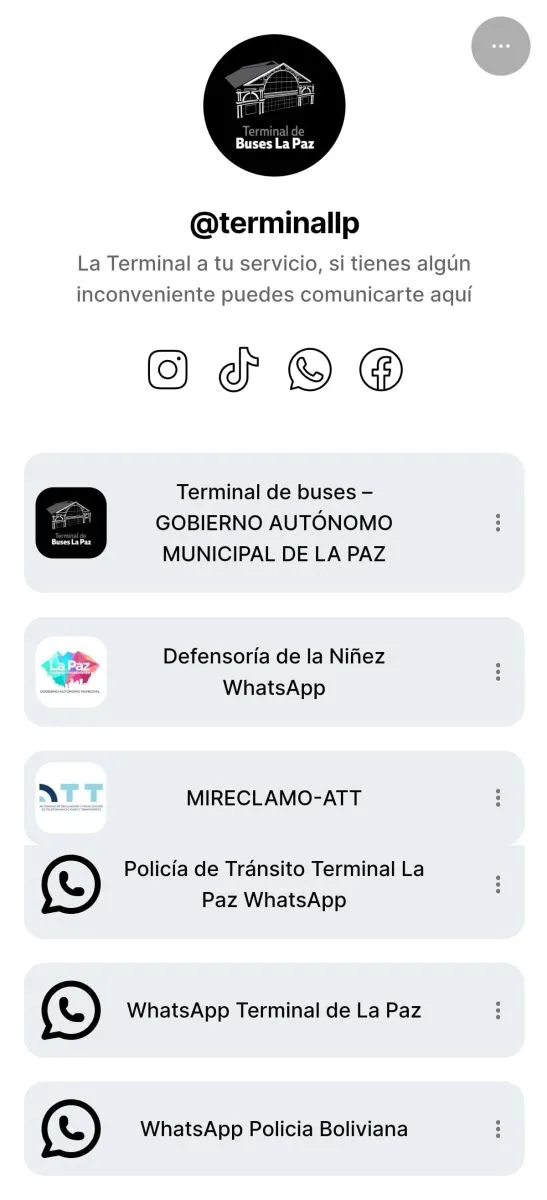 “Estamos lanzando este QR con la intención de que los pasajeros tengan contacto directo con las instituciones que trabajan al interior de la terminal. En caso de sentir o percibir alguna irregularidad podrán contactarse en tiempo real con las Defensorías de la Niñez, Tránsito o el Batallón de Seguridad Física”, señaló la directora de la Terminal de Buses de La Paz, Iveliz Asturizaga.