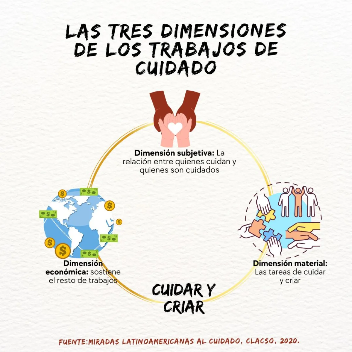 Claudia Arce, investigadora y parte de la Plataforma Nacional de Cuidados en Bolivia asegura que es preciso difundir de forma masiva que los trabajos de cuidado son trabajos no pagados, no valorados y que sin ellos las personas no podrían cumplir sus otras tareas.