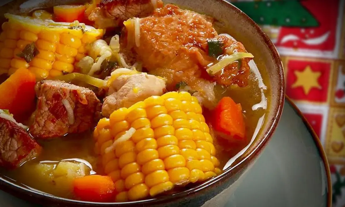 7 » Al igual que en la preparación tradicional, sirva en un plato hondo. Ponga un par de papas blancas, tunta, un choclo y luego cubra con el caldo y las setas.