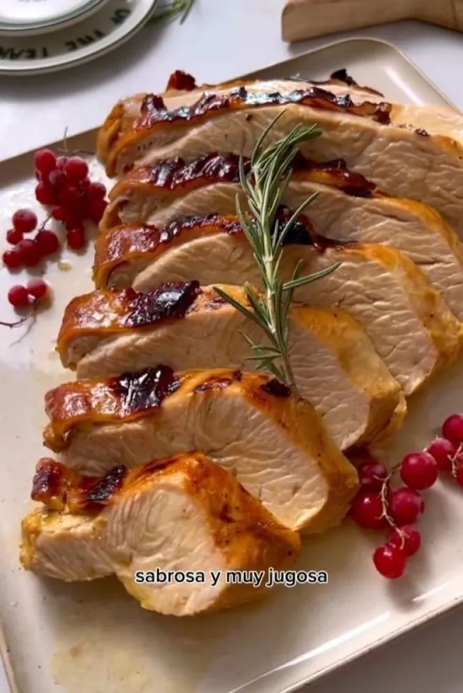 7 » Una vez que la pechuga esté cocida, apague el horno y deje reposar por 10 minutos. Luego corte y acompáñelo con la guarnición de su preferencia.