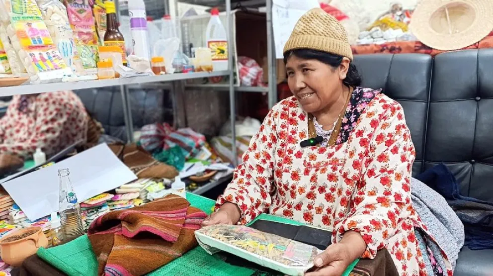 Salomé has been selling since she was 13, and in the photos, some esoteric products. Photo: Carlos Quisbert