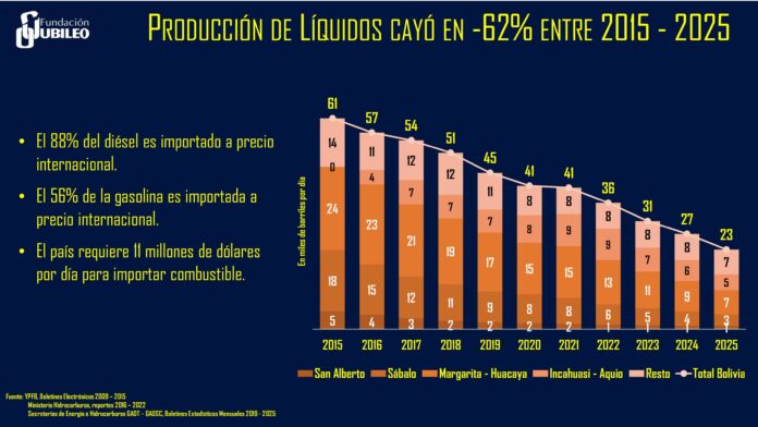 This situation is due to declining gas and liquid production, stemming from the lack of exploration during Evo Morales’s administration—despite the then-Minister of Economy and Public Finance, Luis Arce, having the resources from the international oil price boom to invest in this area.